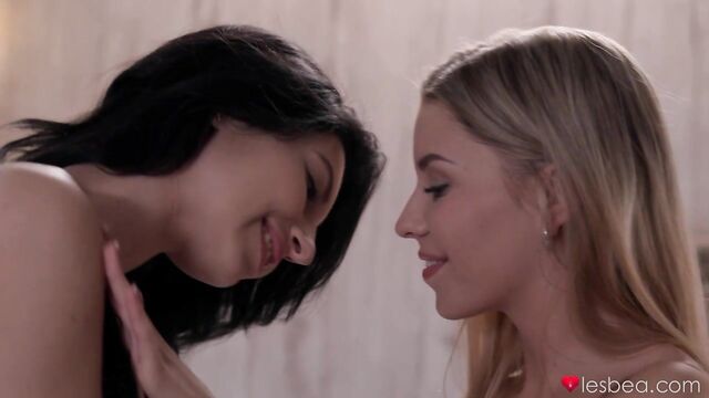 Description:Raven-haired stunner Lilly Bella is pleasuring herself with a vibrating sex toy as Lucky Bee watches on. Wearing heels and sexy black lingerie, hot blonde Lucky walks over to Lilly and the lesbian lovers passionately kiss. Lilly plays with Lucky’s small, perky boobs, then she stimulates Lucky’s clit using the vibrator. Lilly and Lucky take turns fingering each other’s wet holes, then Lucky sits on Lilly’s face so she can lick and taste her sweet pussy juices. To finish, the gorgeous babes grind together in the scissor position and then masturbate till they're screaming in orgasm!