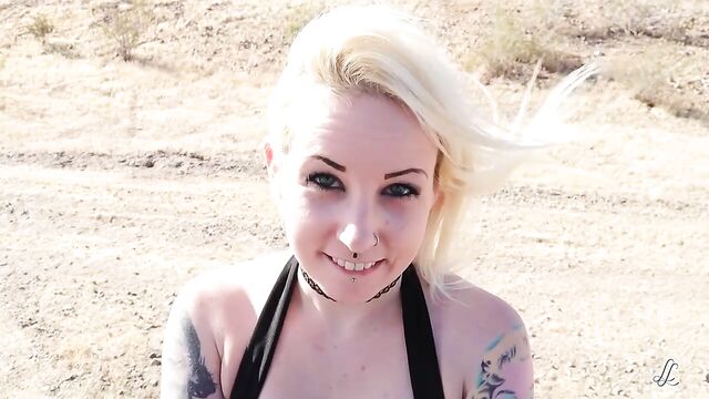 Description:Johnny Goodluck and Lady Lazarus took a cruise and ended up at a local all terrain track where she did a little strip tease for him, sucked his cock and fucked her. They definitely got caught...and kept going. He blew his load on her face, her tits and into the high winds - it really accentuated his aptly nickname 'Rocket'.