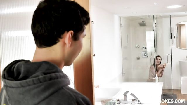 Description:When Angel Ryder hits the gym, she hits it hard and makes sure she breaks a nice sweat. How else can she keep her body so perfectly fit? Today, she gets home and finds the time to practice a little self love. She hops in the shower and cannot help but run her hands over her own body lovingly. She works her way into every nook and cranny until she finally starts rubbing herself. That is when she sees her stepbrother perving out on her! She is pissed, but eventually he convinces her to let him do a set in her extra tight pussy. He shoves his long rod inside her and hits her G spot with immediate precision. Angel orgasms intensely as she takes her stepbros cock all the way to the balls! What a workout…