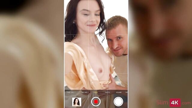 Descrizione: A skinny brunette sends her boyfriend a candid photo. He is in the bathroom and is very excited. The guy returns to the bedroom and starts caressing his lustful girlfriend. After a wonderful fucking in various positions, he fills her pussy with cream.