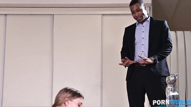 Description:Travelling saleswoman Silvia Dellai is making a house call on brawny black stud Yves Morgan to try to interest him in her latest skin creams. But as she rubs the cream on his broad, hairy chest, her sales pitch is the furthest thing from her mind! Before long she decides to try out rubbing some of the lotion on Yves' monstrous dong, the white cream shining on his black blood sausage. But once she's done rubbing him down, she decides to take the whole thing right down her throat! Now that the foreplay is out of the way, Silvia strips down to reveal her statuesque physique and firm, bouncy tits, sidling over to Yves and bending over so that he can plant his root right between her thighs. After he stretches out her moist pink pussy for a while, she takes him cowgirl -- and then Yves' roommate, athletic black brothah Darrel Deeps shows up! Like all good sluts, Silvia knows that the only thing better than a black cock is two! But now that Silvia's vag has gotten its share of the action, Darrell decides to give her little pooter a workout of its own before subjecting her to a merciless dark DP as her nipples explode with delight. You won't be disappointed in this hardcore interracial action!