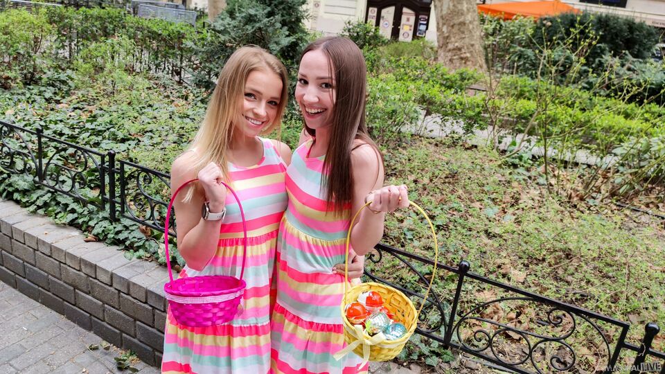 Descrizione: Cute cousins Alexa Flexy and Kate Quinn come visit Porno Dan to experience the joy of a real egg hunt. The winner does win a special prize she enjoys a lot and the other still get a very nice consolation prize as well.