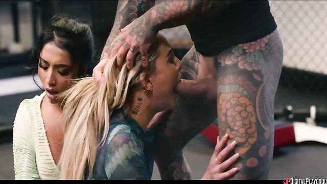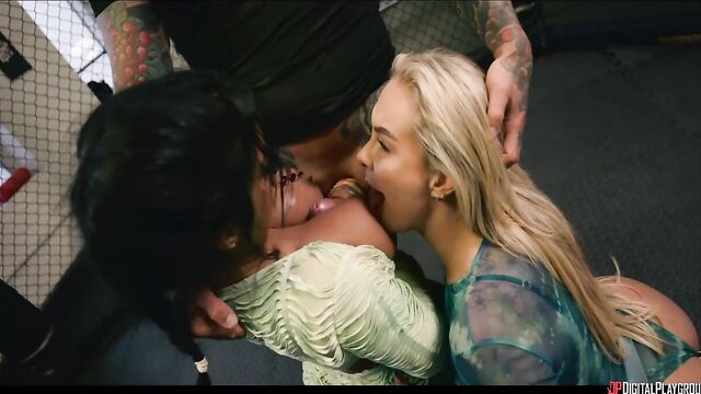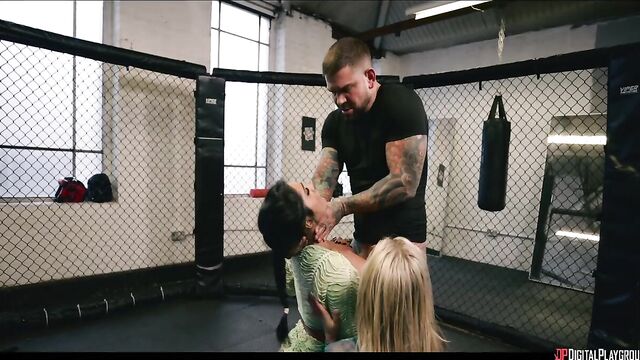 Description:As Brianna Garcia starts to win fights in the MMA world, it puts her on the radar of Jerry Finch, who suggests her for the match to get champion Hayley Logan's fans buzzing again. Hayley couldn't care less about the scrappy upstart... until she sees she's fucking trainer Chris Diaz! The champ vows to destroy Brianna, and Jerry brings a title fight contract--and hot ring girls Annabelle (Yasmina Khan) and Cynthia (Ali Rose)--to Chris's gym. While Jerry goes to introduce himself to the fighter, the sexy women get to know Chris better, pulling his cock out in the octagon and sucking it, then seeing how it feels to get pinned by the MMA star on the mat! Then they pin him, riding his face and cock, before they share his load... just in time for Brianna to catch them! She's in for the fight, but can she win without her trainer?