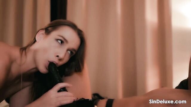 Description:Long-haired brunettes Alexis Crystal and Katy Rose slink in lace lingerie and sky-high heels, lips crashing in wet, tongue-twisting kisses. Alexis peels Katy’s thong, fingers rubbing her shaved clit till she drips. Katy drops, licking Alexis’ slick pussy like candy. Glam turns nasty—Alexis straps on a thick dildo, bending Katy doggy and slamming deep, small natural tits bouncing with every thrust. They swap; Katy pegs Alexis missionary, moans echoing as the rubber cock stretches tight holes. Sensual babes grind, kiss, and cum hard in a sweaty, strapon-pounding lesbian fuckfest.