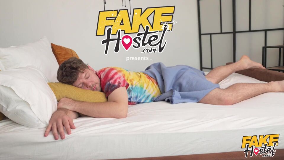 Description:Blonde babe Jayla De Angelis and brunette baddie Alyson Thor come into their room in the Fake Hostel to see Michael Fly sprawled out in the bed. Thinking Michael is unaware, the ladies sneakily shake their bums and spank each other. Not wanting to spoil the fun, Michael doesn't move a muscle as they suck each other's titties, then strip naked to eat each other out by the bedside. The ladies take out a vibrator and start tribbing, then notice Michael has gotten hard! Alyson climbs on top of his cock and starts to ride Michael while Jayla plays with her pussy by his head, then covers the other two in squirt. Alyson squirts too, and by the time Michael has made them both cum, the bed is soaked through. Jayla sucks Michael's cock until he cums in her mouth... then she spits it all over Alyson!
