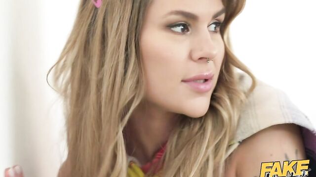 Descrizione: The Landlord checks blonde babe Zlata Shine into the Fake Hostel and then realizes he stinks! Rushing to the shower, the Landlord starts to scrub, but quickly realizes he has used too much shampoo! The suds get into every crevice he has, but unfortunately, also into his eyes. Blinded, the Landlord cries out for help, and Zlata comes running. She helps him towel off, then gives him her healing touch... and a blowjob. Turned on, the Landlord fucks Zlata and her big tits bounce, then he lays down a towel for her to ride his cock. Zlata gives the Landlord more head and even a rimjob, then the fingers and fucks her until her pink pussy is gushing! The pair head back to the tub, and the Landlord covers his client with a facial!