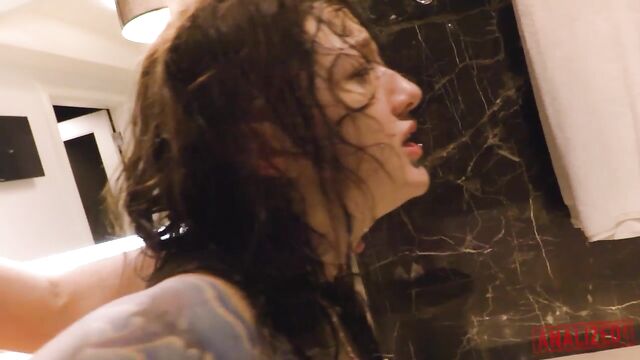 Descrizione: Pretty babe Kelsi Lynn shows off her bubble butt while in the bathroom. She is wearing a blue bikini. Kelsi teases the camera with her beautiful face and luscious body. She fondles her boobs and rubs her pussy. This tattooed slut continues to play with herself until James Deen enters the frame. He goes straight to her then puts her hand into her mouth. James pulls her closer and hugs her tightly from behind. Kelsi gags as James force her hand deeper into her mouth. He wipes all the spit into her pretty face. James continues to rough her up, choking, gagging, slapping and spanking her. Kelsi seems to enjoy the impact play and asphyxiation. She gets on her knees to suck his hard cock. James shoves his cock deep into her throat. She can’t help but gag as his big dick touches the back of her throat. James receives a wet and sloppy blowjob. He keeps on stuffing her mouth with his dick. Her pretty face is now completely covered with spit. James pulls her up then turns her around. He inserts his big cock into her tiny asshole. Kelsi moans loudly as James pounds her from behind. She can feel his cock stirring up her anal cavity. James covers her mouth with his hand. The two goes inside the shower. James continues to fuck her in the ass. She shows off her gaping asshole to the camera. He fucks her again in doggystyle position before shifting to reverse cowgirl. She sits on the lap of James. She slides his dick in and out her butt hole. He spreads her puffy pussy for the camera. They continue to fuck in the bathroom for quite some time, constantly changing their position. They try to utilize the small space as much as possible. James keeps on pounding her asshole until he feels like he is about to cum. He pulls out his cock from her wide gaping asshole then shoots his warm cum all over her pretty face.
